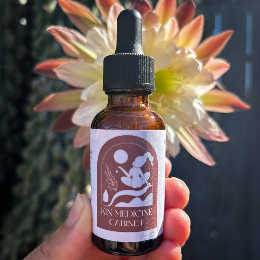 A protective, warming tonic for body and spirit. Mugwort awakens dreams, cardamom lifts and warms, elderberry shields, rhodiola strengthens, and ginger sparks circulation. Honey weaves them together in brandy’s golden glow for clarity, resilience, and deep seasonal support.